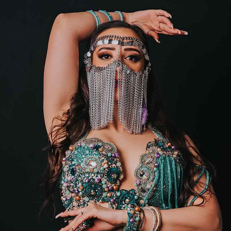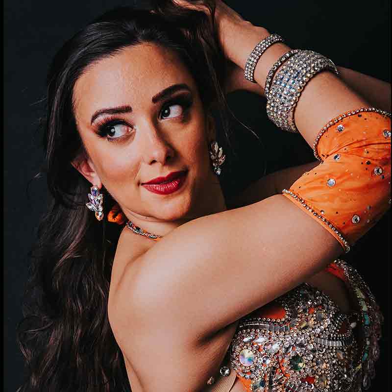 Noelia Del Pino es maestra y bailarina uruguaya de danzas árabes, con formación internacional en estilos egipcio, libanés y argentino (ex integrante de 2 de los ballets más importantes de Argentina).